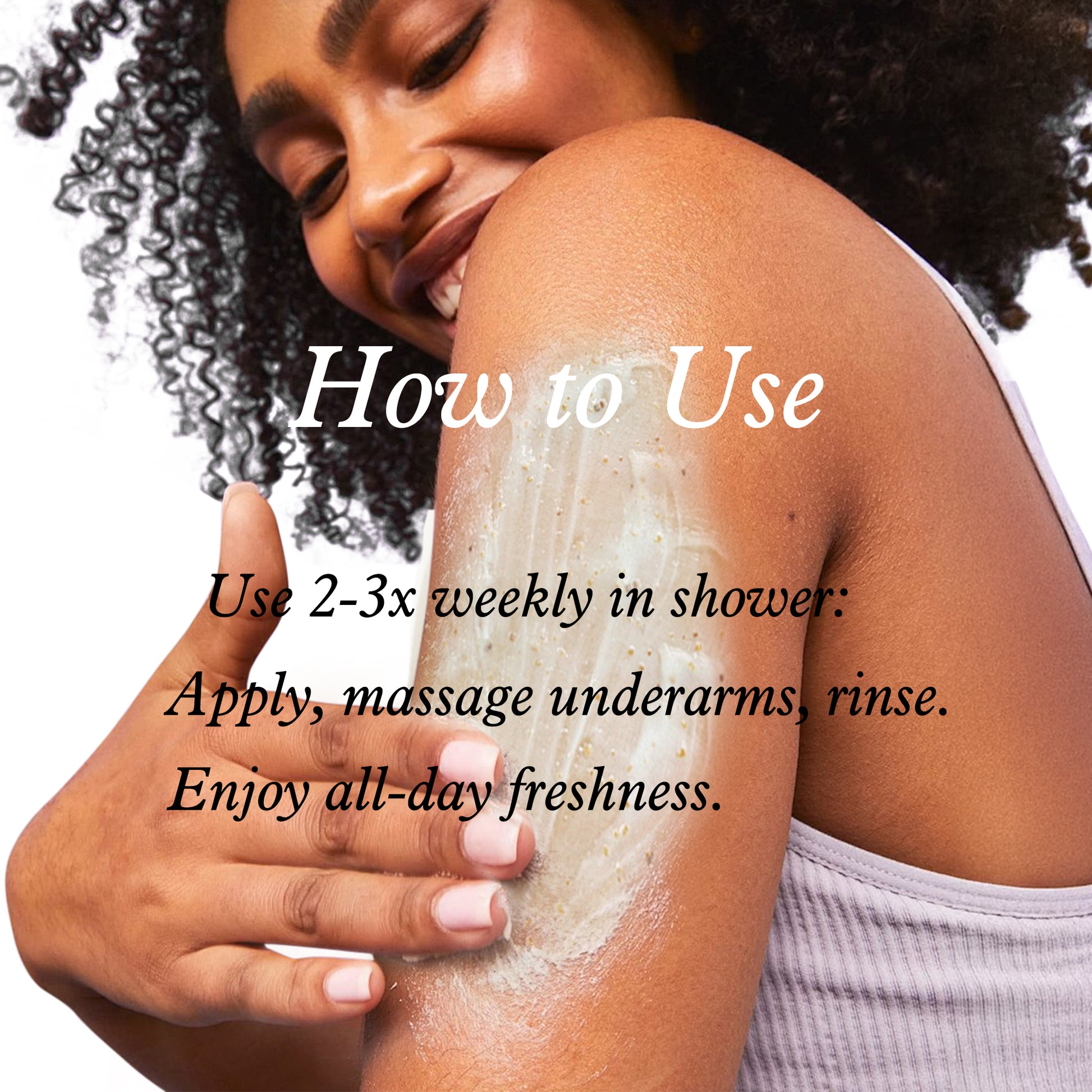 - 【How to use】It is best to apply it in the bath 2-3 times per week. Apply it and massage into your underarm area during shower . Rinse well. It will keep your underarms smelling fresh all day long.