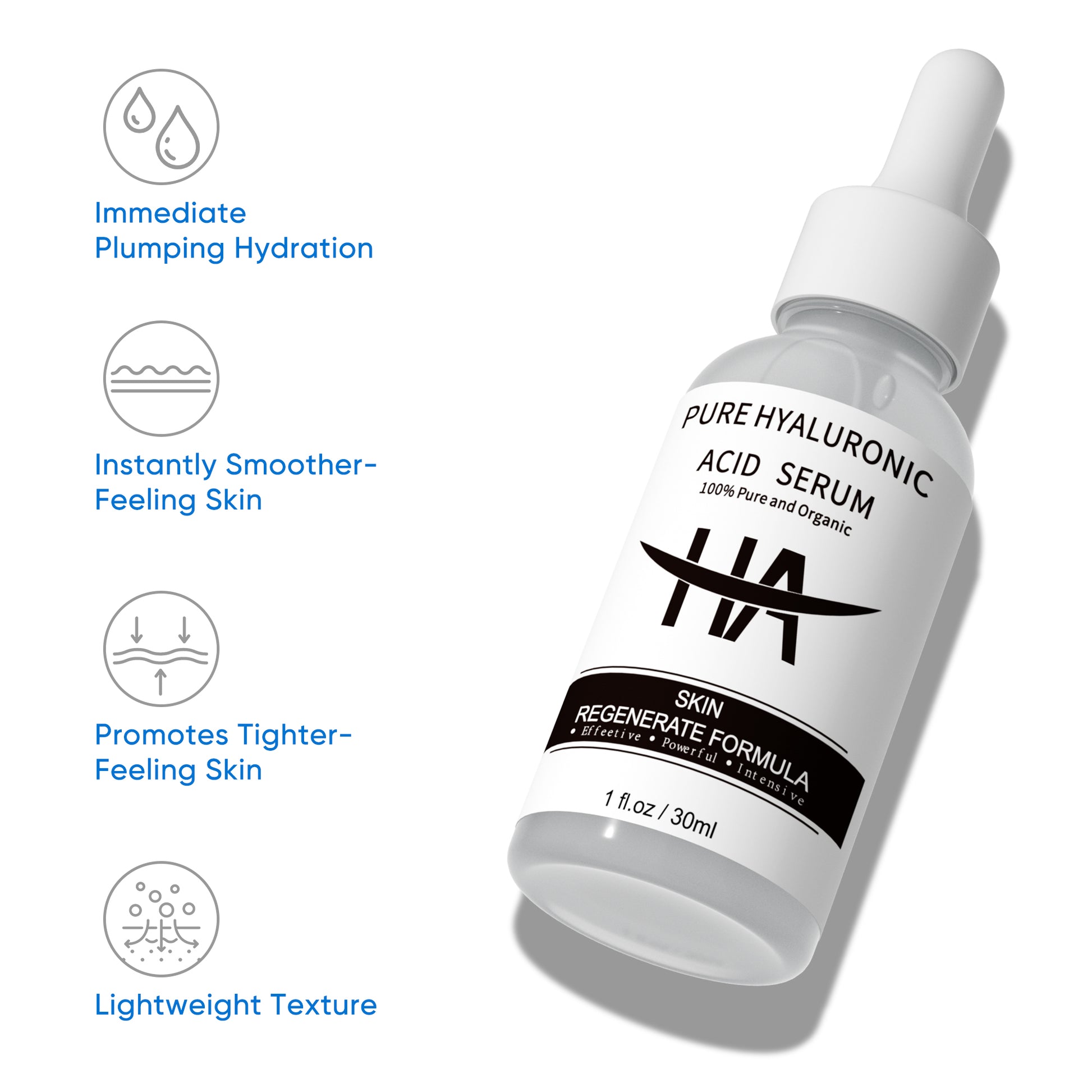 - This pure Hyaluronic Acid Serum is formulated with powerful anti-aging and anti-wrinkle properties to reduce the appearance of fine lines and wrinkles.